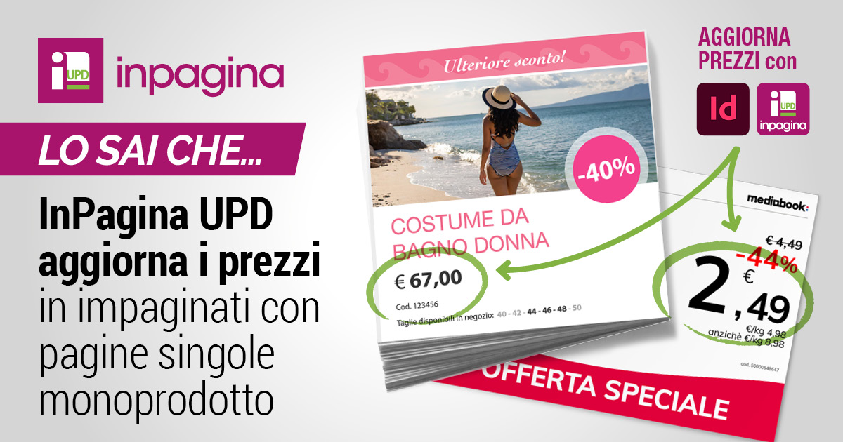 𝗜𝗻𝗣𝗮𝗴𝗶𝗻𝗮 𝗨𝗣𝗗 è il plug-in per InDesign che permette di cambiare automaticamente tutti i prezzi del tuo documento individuando codice e prezzo da aggiornare.