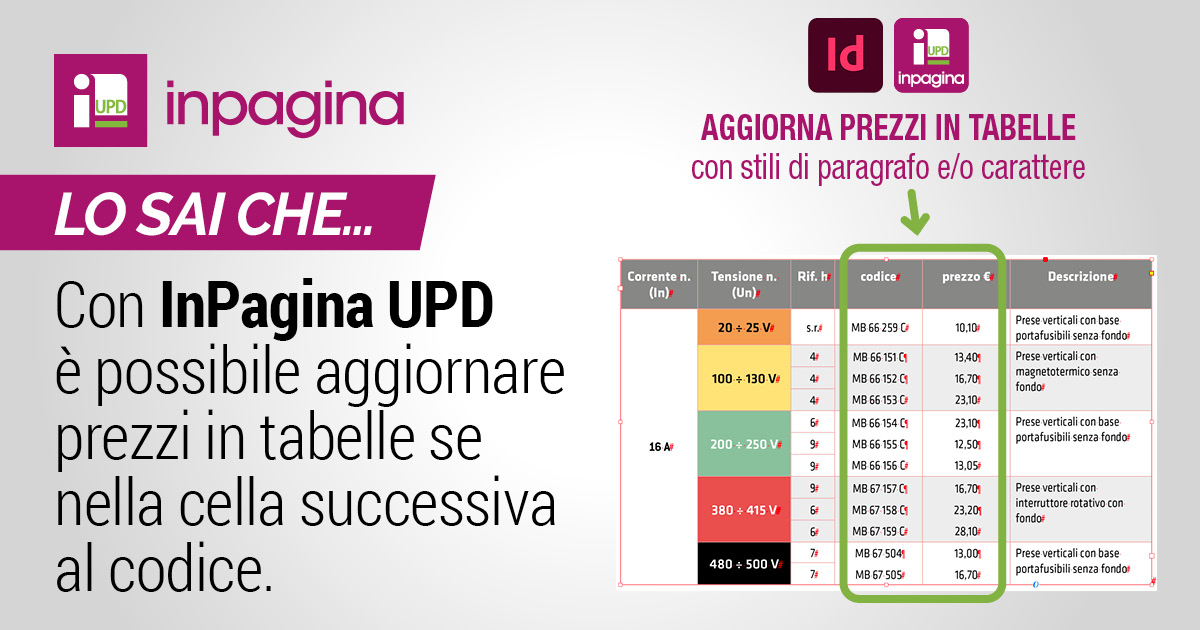 InPagina UPD permette di aggiornare automaticamente i prezzi nelle tabelle che si trovano nella cella successiva a quella del codice.